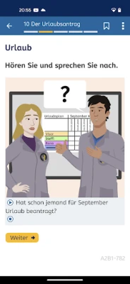 You can learn German for free at A2-B1 level. A2-B1-Beruf is the mobile version of the „A2-B1 Beruf“ German Course at https://vhs-lernportal.de/deutsch.. The app allows you to use all the functions of the „A2-B1 Beruf“ German Course offline on your smartphone.