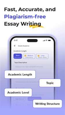 Say goodbye to those late-night writing marathons and writer's block frustrations! Our AI-powered app is designed to unleash your creativity and elevate your academic writing to new heights. Whether you're a student working on essays, a researcher crafting groundbreaking papers, or an aspiring author honing your skills, our app is your trusty sidekick to help you articulate your ideas effectively.