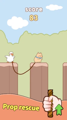 Two good friends act together, with a rope tied around their waists, fly over various obstacles to reach the finish line together and achieve the final victory.