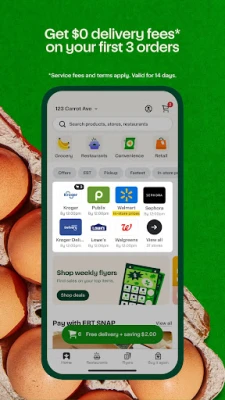 Get food delivery and grocery orders delivered directly to your door in as fast as 30 minutes with our app that helps with your shopping. Let Instacart connect you to your favorite food & drink spots, local grocery store or chain and get your goods in no time. Browse, shop, and eat with convenient grocery delivery in just a few taps! Plus, enjoy $0 delivery fee on your first three grocery orders within 14 days of the first order. Service fees, exclusions, and terms apply!
