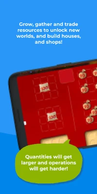 To advance in the game, your child must add and subtract to manage their resources. Over the course of the game, quantities will get larger and operations will get harder.