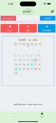 اضافة حجوزات - تعديل حجوزات - طباعة حجوزات - ادارة الشاليهات - ادارة الحجوزات - تقويم لعرض الحجوزات - تسجيل مستخدم