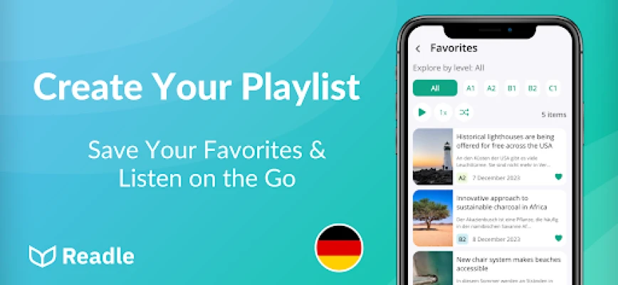 A must-have app for learning German for travel, daily life, or exam preparation. Readle is your best companion for mastering German!