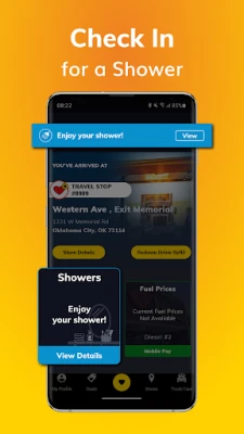 Bypass the fuel desk with shower check in at your favorite Love’s Travel Stop with showers. First, be onsite at a location with showers. Then, tap the blue Shower Check In button on the Home or Store Details screen. Once your location has been confirmed, complete the transaction with your My Love Rewards shower credits and/or points. You can also plan ahead by checking busy times at other locations.