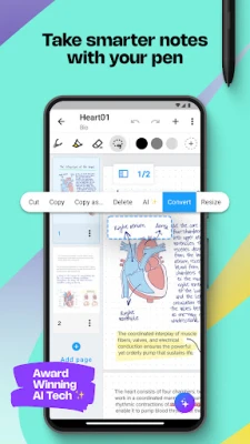 Create stunning notes and professional documents effortlessly by hand, brainstorm ideas on an infinite canvas, and annotate PDFs seamlessly. Powered by the world's leading AI handwriting recognition technology, MyScript Notes offers a dynamic platform where handwriting, text, drawings, diagrams, and images seamlessly coexist on an expandable canvas. Enhance your note-taking experience with intuitive pen gestures, effortlessly converting handwriting and shapes into typed text and precise forms.
