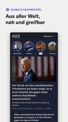 Die neue NZZ-App bietet Ihnen Nachrichten, Analysen und offene Debatten zu Politik, Wirtschaft, Gesellschaft im neuen und intuitiven Design. Erleben Sie mit der NZZ einen Ort für offene Debatten, vielfältige Meinungen und unabhängige Berichterstattung. Neben aktuellen Nachrichten zur Schweiz - zu Abstimmungen, Sessionen und Inlandspolitik - haben Sie mit «Der andere Blick» eine differenzierte Perspektive auf die innen- und aussenpolitische Lage in Deutschland.