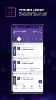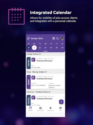 Log in to view all your jobs, create calendar entries, create travel expenses, upload receipts, clocking in and out, get directions to your venue and more.