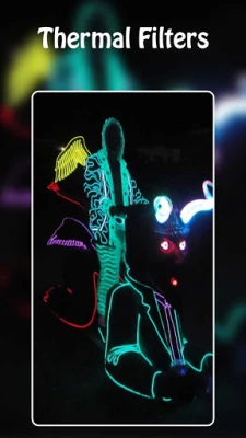 * Thermal effects * Night mode effects * Real time effects * UV vision effects * Honey bee vision effects * Save image quickly * Supports auto focus * Supports front camera