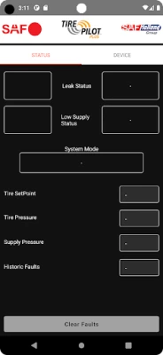 The mobile app must communicate over BLE with a pressure control module to get monitoring status for tire inflation.