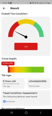 Introducing Tire Scan, your ultimate tool for detailed tire evaluations right from your smartphone. This user-friendly app simplifies tire inspections by allowing you to snap photos of your tire's sidewall, tread, and optionally the Tire Identification Number (TIN). With just a few taps, Tire Scan's advanced AI technology analyzes the images and measures tread depth using a standard coin for accuracy. Receive a comprehensive report on your tire's condition, including wear, tread depth, and age. Whether you're a car enthusiast or just looking to ensure your vehicle's safety, Tire Scan is the perfect assistant for maintaining optimal tire health. Download now and start scanning!