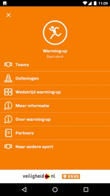 Met de warming-up app kunnen hockey trainers/coaches voor iedere leeftijd een warming-up trainingsschema op maat, met video's van de oefeningen. Door deze oefeningen kunnen teams op een leuke, verantwoorde en gevarieerde manier beginnen aan de training en wedstrijd.